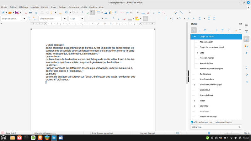 Voici un exemple de document réalisé avec Libre Office : exemple texte LibreOffice.