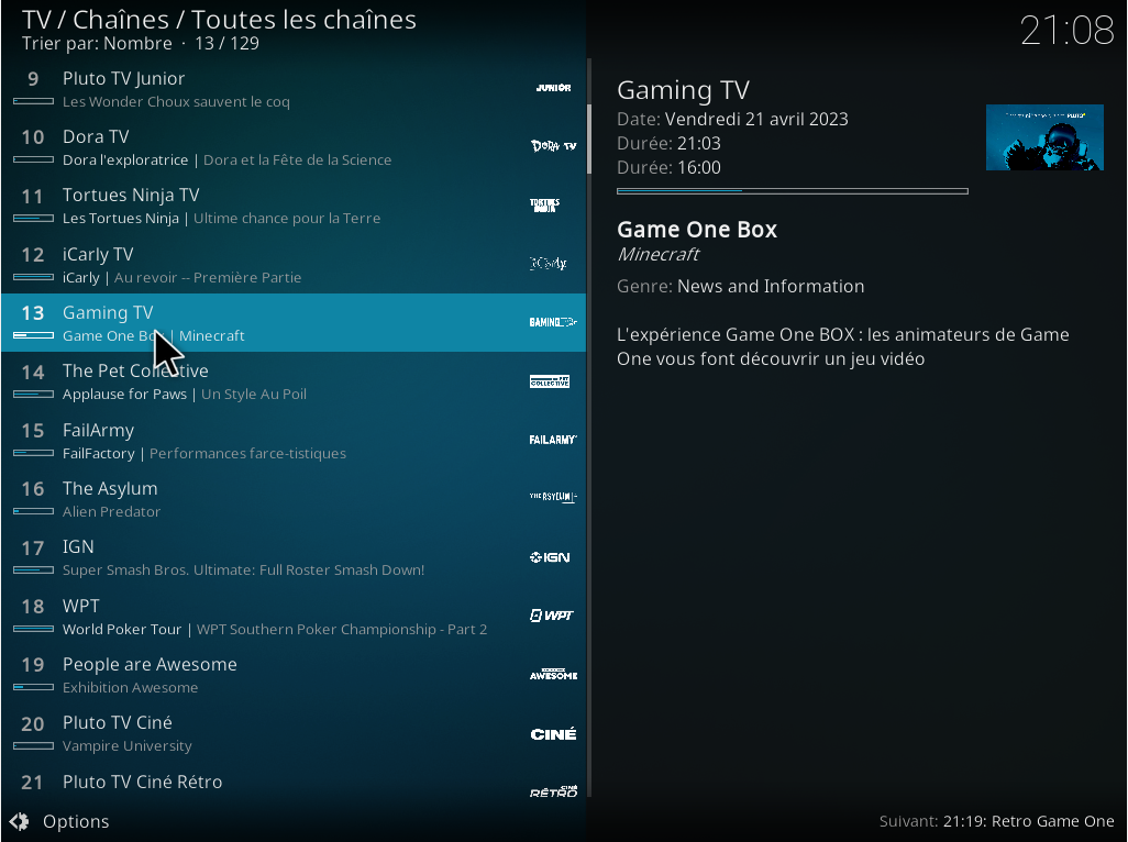 Dans le prochain article, nous verrons comment ajouter les chaînes de la TNT avec Catchup TV and More.
