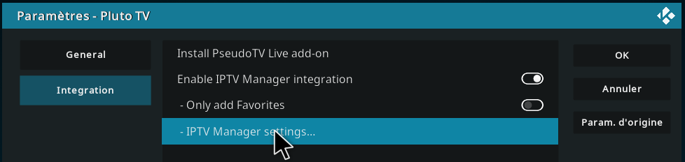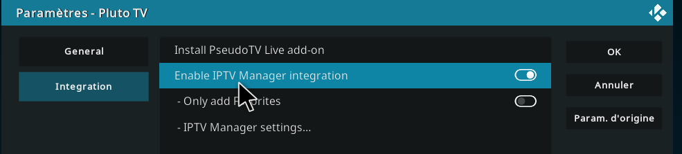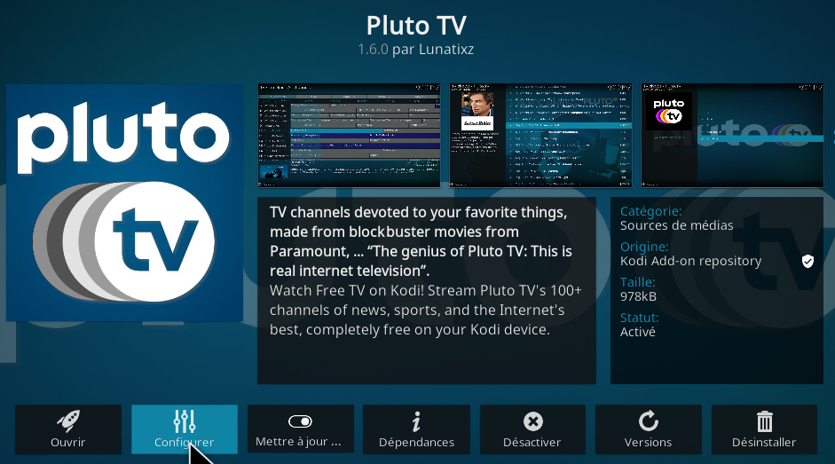 Extension/Mes Extensions/Extensions Video/Pluto TV/Configurer